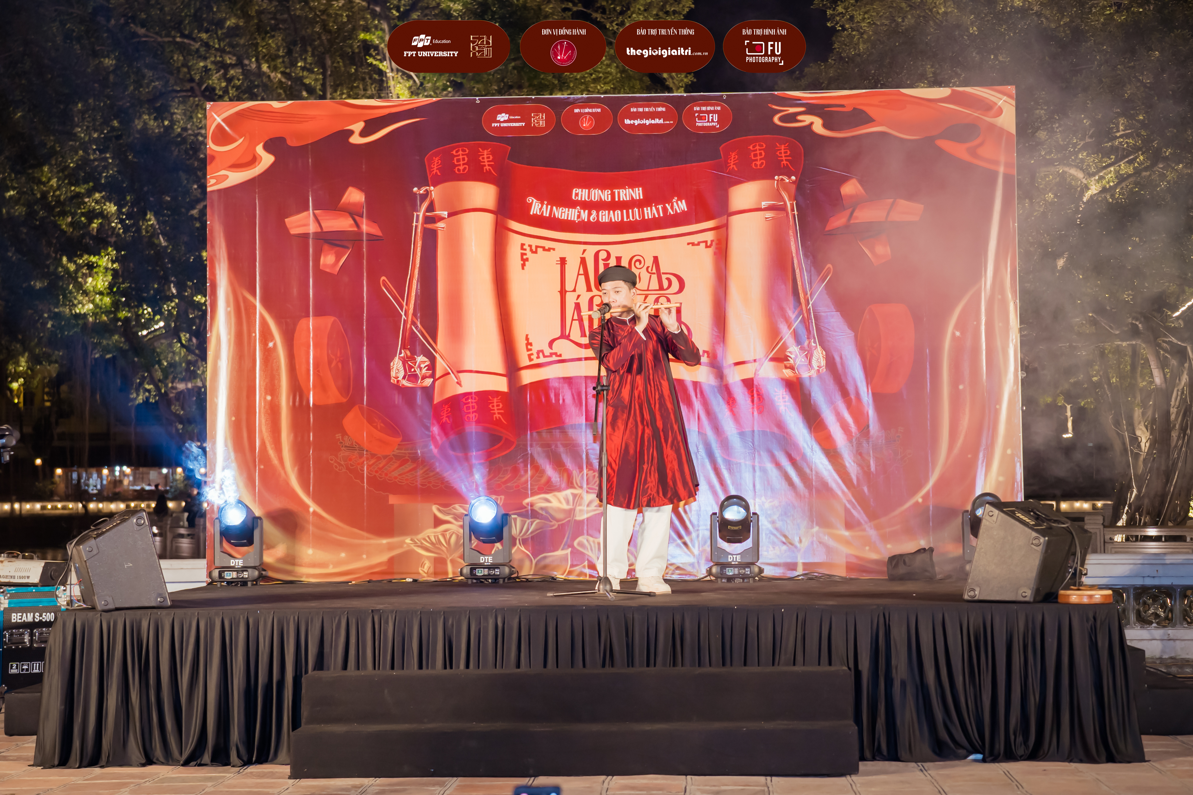 Điểm nhấn tạo nên sức hút của chương trình chính là tư duy làm mới di sản của người trẻ. Ngay từ buổi chiều, không gian Hồ Văn đã trở nên sôi động với các hoạt động trải nghiệm sáng tạo. Khán giả trẻ hào hứng tham gia hành trình "xuyên không" với Xẩm 360 độ – một ứng dụng web công nghệ thực tế ảo tái hiện không gian tàu điện xưa ở Hà Nội, và lưu giữ kỷ niệm tại khu vực check-in mang đậm dấu ấn thị giác hiện đại.